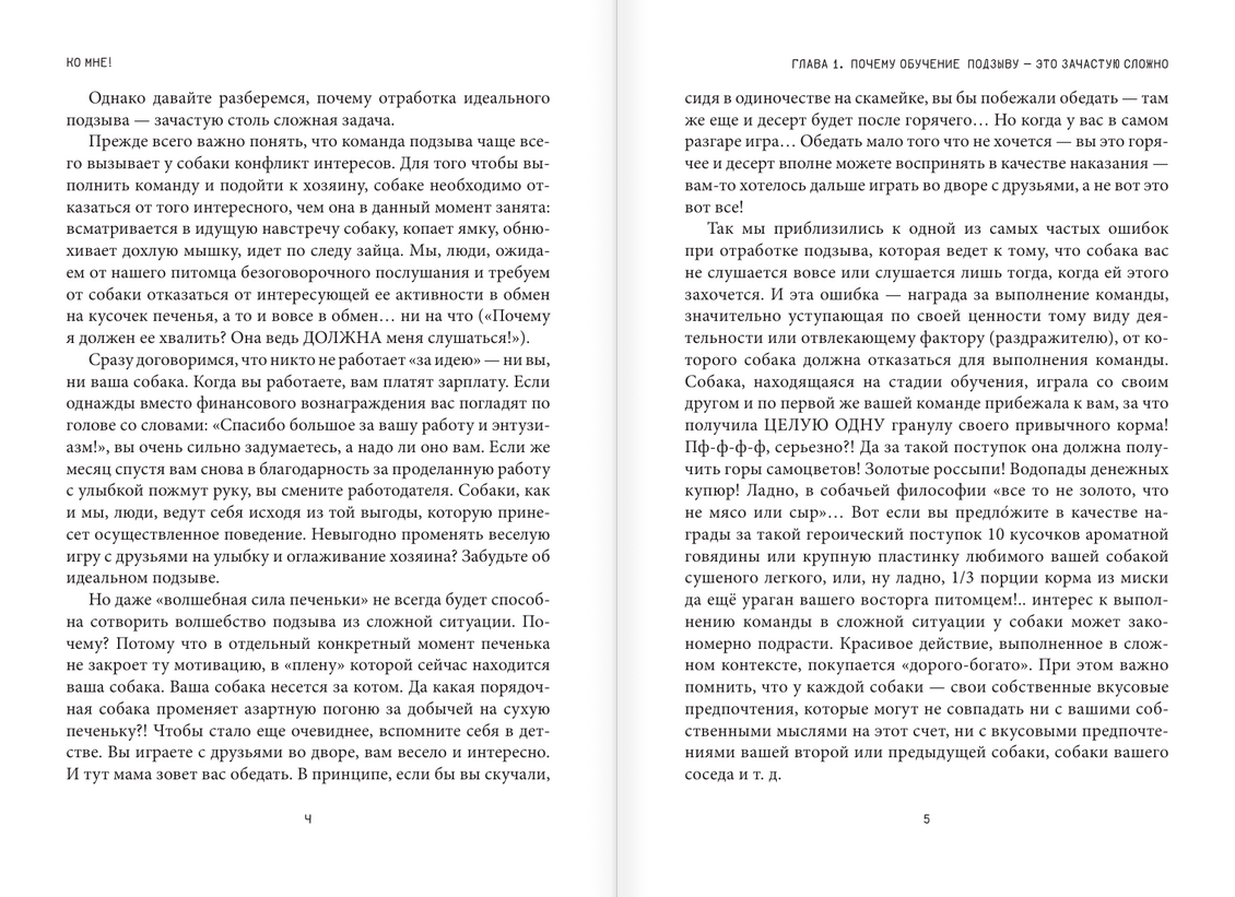 Собака бродит где-то в стороне от тропинки, занимаясь своими собачьими делами, но бросает все и бежит, нет – летит к нам пущенной из лука стрелой, едва услышав, как мы произносим команду подзыва... Идиллия, не иначе. И эта идиллия вполне достижима. Конечно, потребуются некоторые усилия, но результат того стоит, ведь идеально выполняемая команда подзыва – это гарантия безопасности нашего питомца. А если усилия прилагать в правильном направлении, то и путь до идеального подзыва значительно сокращается. Какие усилия правильные, а какие не очень, что может пойти не так и как это исправить, вы узнаете из этой книги.