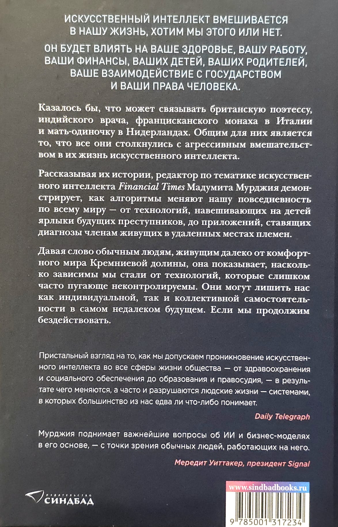 Нравится нам это или нет, но искусственный интеллект уже повсюду — в промышленном производстве, научных исследованиях, электронной коммерции, медицинской диагностике, лингвистике, искусстве… Автоматизирует рутинные задачи, повышает производительность, стимулирует инновации… Все верно. Но есть и другая сторона. Слишком часто ИИ приводит к эксплуатации, дискриминации и неравенству, особенно среди уязвимых групп населения. В своей книге специализирующийся на ИИ редактор Financial Times Мадумита Мурджия рассматривает влияние этих мощных, несовершенных и часто эксплуататорских технологий на отдельных людей, сообщества и человечество в целом. Это захватывающая история о том, что значит быть человеком в мире, быстро и необратимо меняющемся под натиском ИИ, демонстрирующая опасность нашей растущей зависимости от автоматизированного принятия решений. Когда алгоритмы берут управление на себя, что остается от нашей свободной воли?