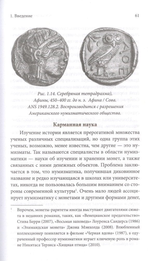 Историк Фрэнк Хольт приглашает нас в увлекательное путешествие по истории нумизматики, изучения монет — одного из старейших и важнейших вкладов в искусство и гуманитарные науки. Кто изобрел монеты и зачем? Функционирует ли чеканка вне нашего контроля, как если бы у нее был собственный разум? Как это изменило мировую историю и культуру? Что нумизматика может рассказать о нашем прошлом, чего нельзя было бы узнать из какого-либо другого источника? Как нумизматика продвинулась вперед с использованием современной науки?