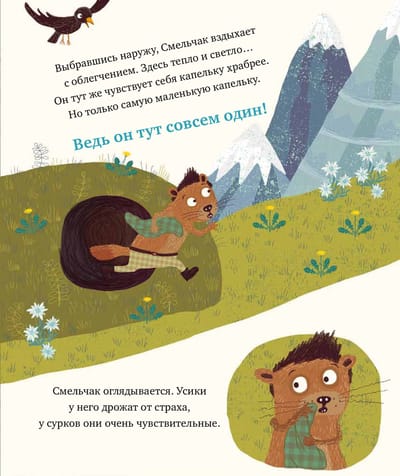 Сурок Смельчак играл в прятки, когда вдруг понял, что заблудился. Сердце его заколотилось, сурка охватил страх. Вместе с героем и другими обитателями гор ваш ребенок познакомится со страхом, научится его распознавать и найдет подходящий способ справляться с эмоциями.