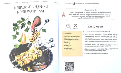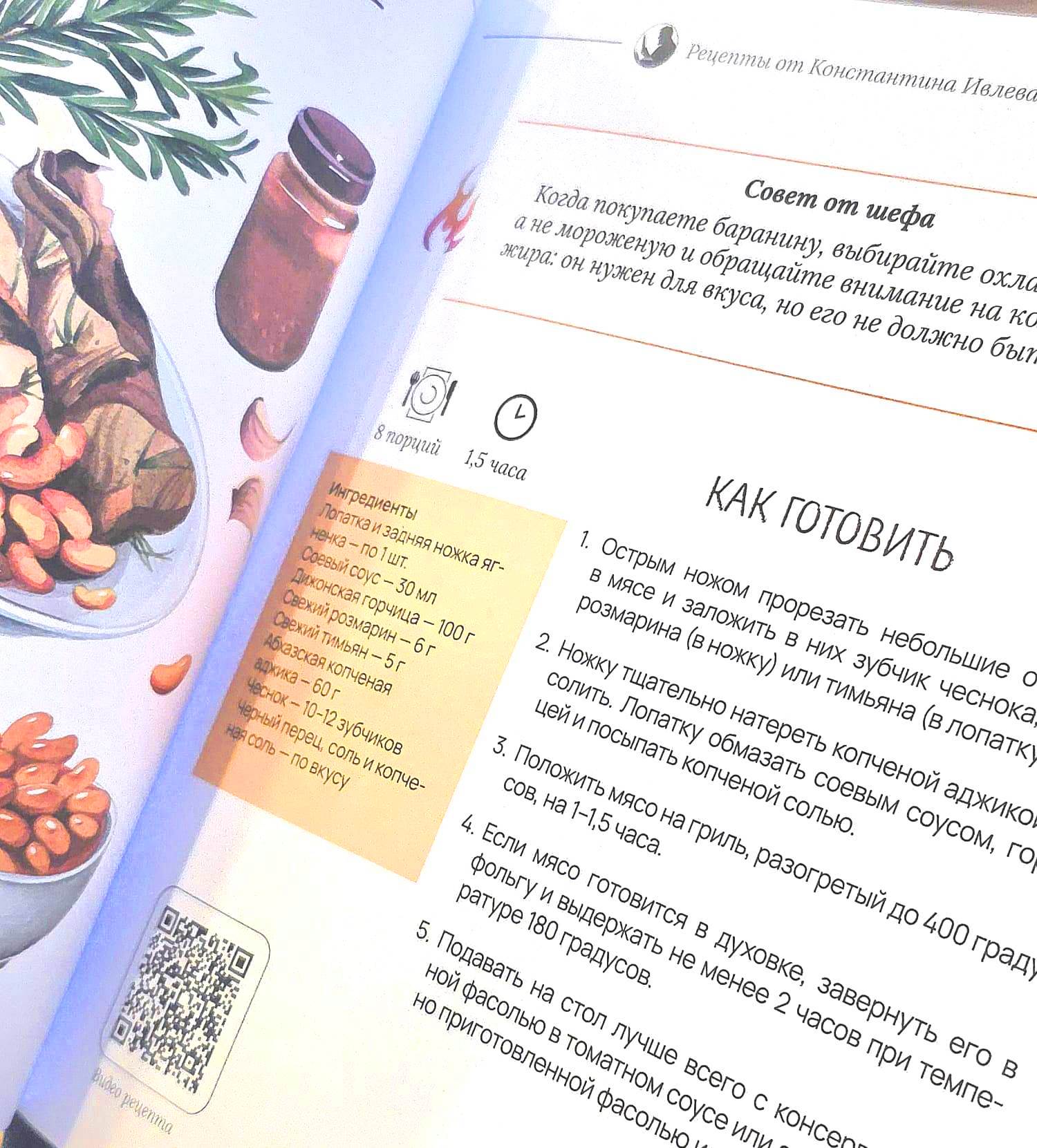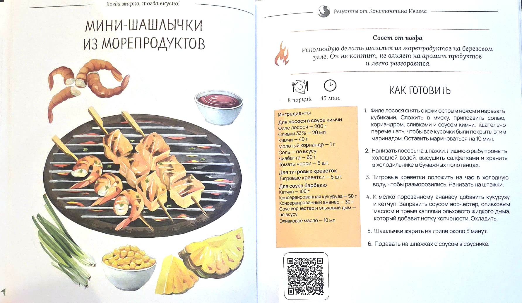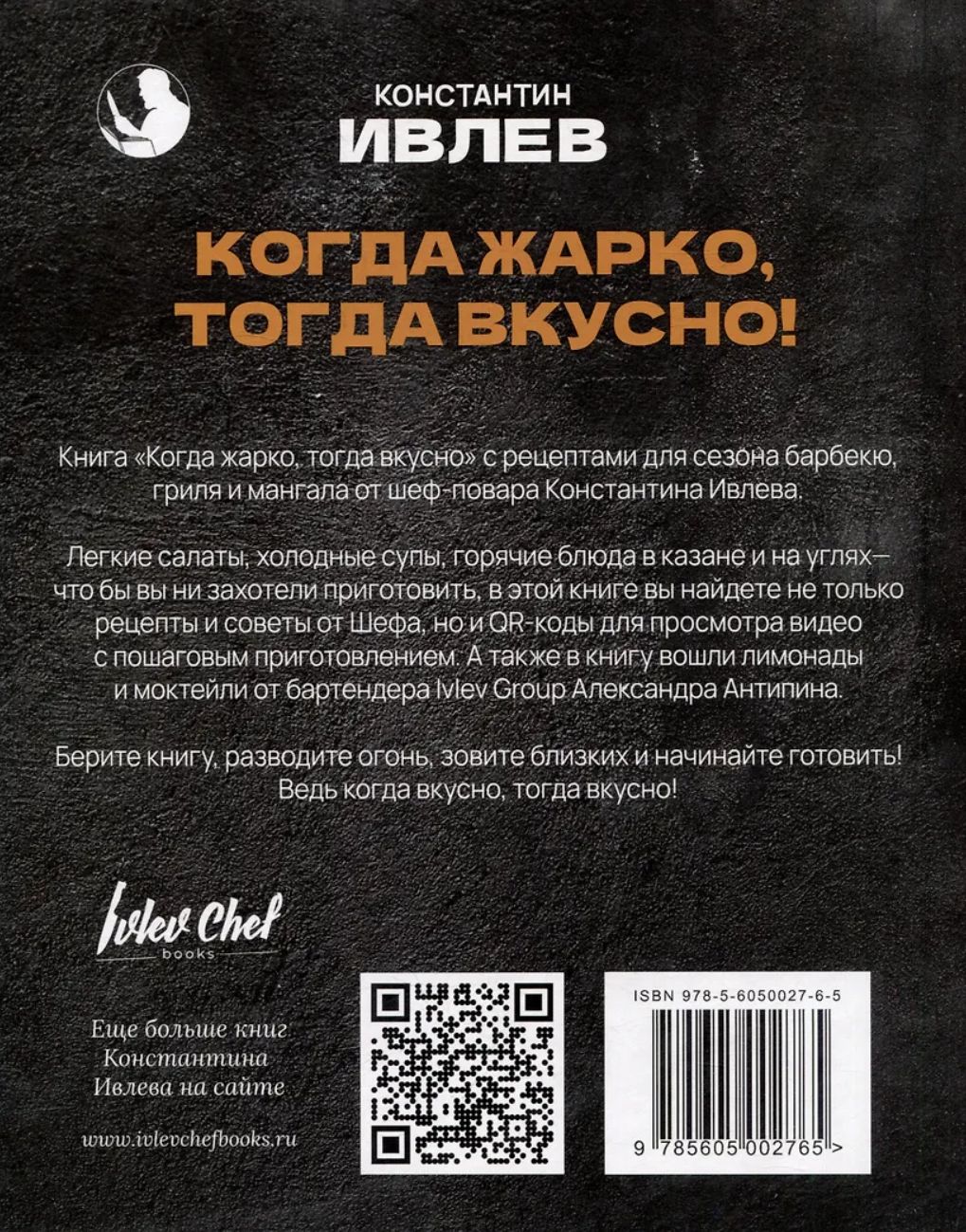 Книга с авторскими рецептами от Шеф-повара Константина Ивлева для гриля, мангала, барбекю и не только. Легкие салаты, холодные супы, горячие блюда или вкусные коктейли — что бы вы ни захотели приготовить, в новой книге вы найдете нужные рецепты, секреты Шефа и видеоролики-подсказки, которые открываются при помощи QR-кодов.