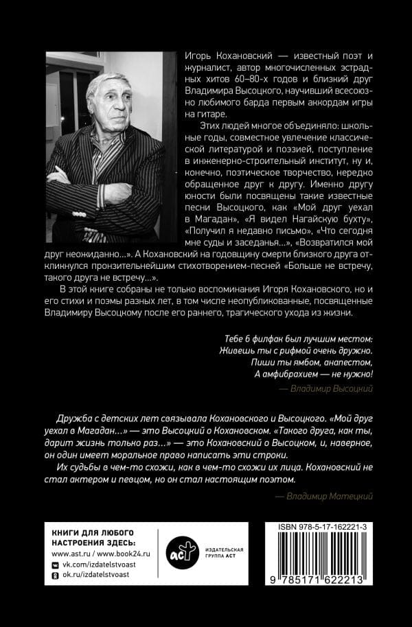 В этой книге собраны не только воспоминания Игоря Кохановского, но и его стихи и поэмы разных лет, в том числе и неопубликованные, посвященные Владимиру Высоцкому после его раннего, трагического ухода из жизни.