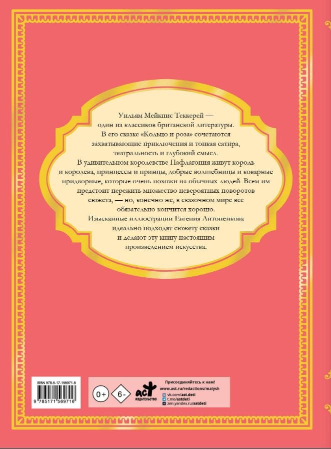 Уильям Мейкпис Теккерей — один из классиков британской литературы. В его сказке «Кольцо и роза» сочетаются захватывающие приключения и тонкая сатира, яркая театральность и глубокий смысл.