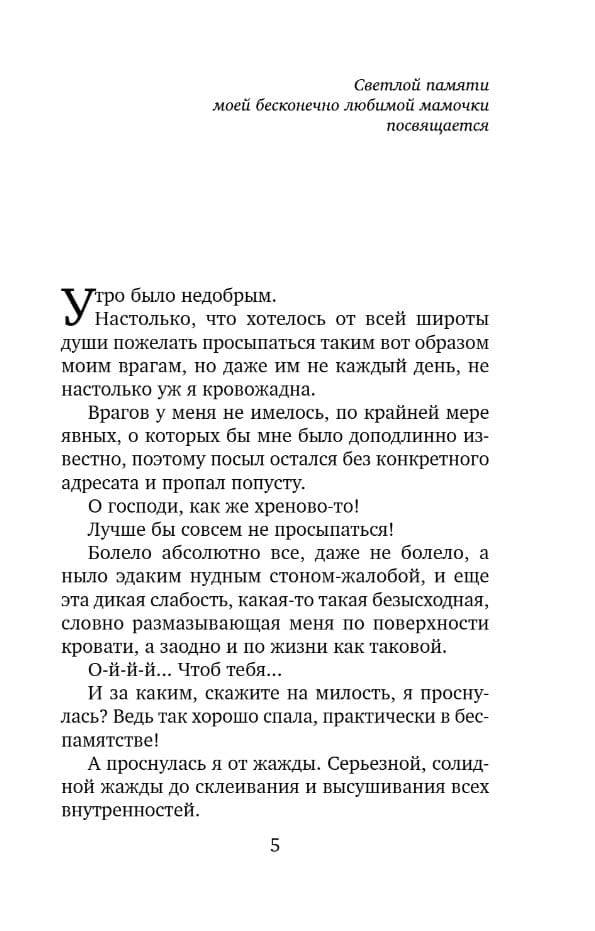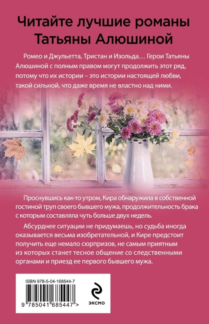 Проснувшись как-то утром, Кира обнаружила в собственной гостиной труп своего бывшего мужа, продолжительность брака с которым составляла чуть больше двух недель. Абсурднее ситуацию не придумаешь, но судьба иногда оказывается весьма изобретательной, и Кире предстоит получить еще немало сюрпризов, не самым приятным из которых станет самое тесное общение со следственными органами и приезд ее первого бывшего мужа.