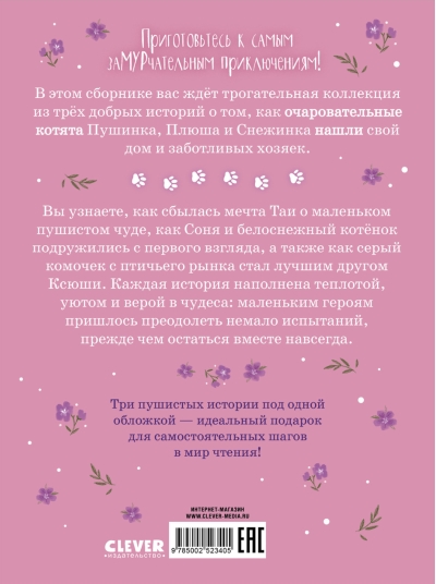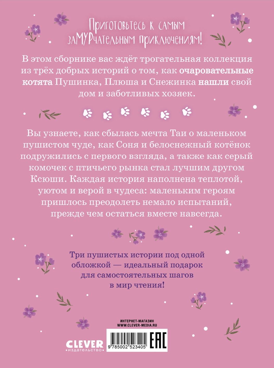 Сборник «Пушистых историй» Елены Ульевой: три рассказа о трогательной дружбе котят и детей, о смелости, мечте и заботе о животных.