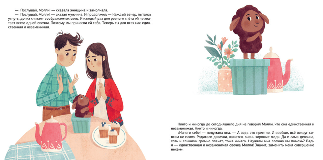 Девочке Аглае грустно и одиноко, поэтому она никак не может уснуть. Овечка Молли не хочет ни с кем общаться, потому что считает себя лучше других. Но однажды они встречаются. Аглая и Молли вместе отправятся гулять по Сонным полям, будут радоваться и скучать, но, самое главное, поймут, что настоящая дружба творит чудеса и всех делает лучше – и людей, и овечек, и даже пирожные…