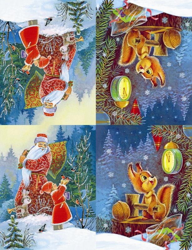 1. Раскройте книгу посередине, аккуратно разогните скрепки. 2. Разъедините листы. 3. Найдите на оборотной стороне каждого листа пунктирные линии. 4. Разрежьте флажки по пунктирной линии. 5. Отрежьте с двух концов треугольники по пунктирным линиям. 6. Положите бечёвку на внутреннюю сторону флажка по линии сгиба. Нанесите клей на заштрихованную часть флажка. Согните флажок по линии сгиба. 7. Соедините две стороны флажка и крепко прижмите. Сделайте на концах бечёвки петельки, чтобы её удобно было вешать на ёлку. Гирлянда готова! У вас получится гирлянда из 16 двусторонних флажков с красивыми иллюстрациями.