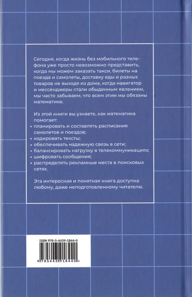Если вы хотите найти ответ на вопрос «Зачем мне математика?», эта книга для вас. В ней рассказывается о современных приложениях математики, без которых невозможно существование авиации, страхования, железных дорог, медицины, интернета, экономики… Список можно продолжать долго, но проще будет сказать — невозможно существование современного мира, каким мы его знаем.