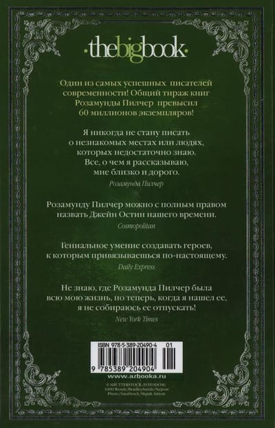 Книги Розамунды Пилчер (1924–2019) знают и любят во всем мире. Ее романы незамысловаты и неторопливы, зато в них много подлинного тепла и сердечности. Кредо писательницы можно охарактеризовать фразой: «У хороших людей всегда все будет хорошо», — и в данном случае это залог устойчивого читательского успеха.