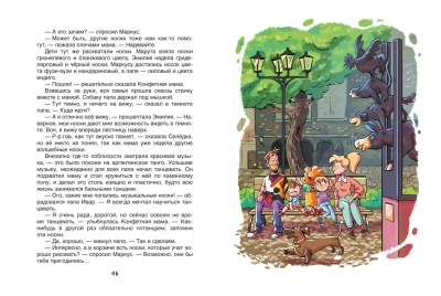 Аусма работает в кондитерской, откуда по округе разливается чудесный аромат печенья, пряников, пирожных и конфет. Вот почему соседи и друзья называют Аусму Конфетной мамой. Есть у Конфетной мамы один секрет: большущая корзина, полная разноцветных носков. Стоит Аусме вытащить оттуда наугад пару носков и надеть их, как они тут же наделяют её какими-нибудь волшебными способностями…