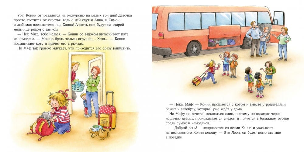 Первая самостоятельная поездка с детским садом или классом — очень важное событие для ребенка и его родителей. Такие поездки учат быть самостоятельным, укрепляют дружеские связи и дают огромный толчок в психологическом развитии детей. Так что не бойтесь отправлять детей в поездки, научите их быть самостоятельными. Конни с детским садом едет на несколько дней в старинный замок. И эта экскурсия ничем бы не отличалась от всех прочих, если бы с ней тайком не увязался Мяф. Но ребята со всем справятся!