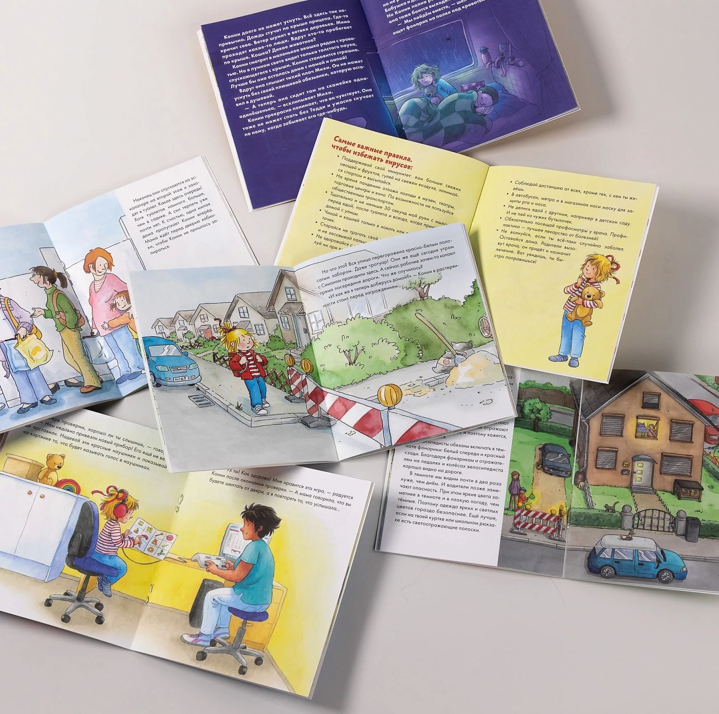 6 книг для развития жизненных навыков. Книги комплекта «Конни и безопасность» научат ребёнка быть внимательным и осторожным, покажут, как вести себя в стрессовой ситуации и почему важно соблюдать правила безопасности и гигиену.