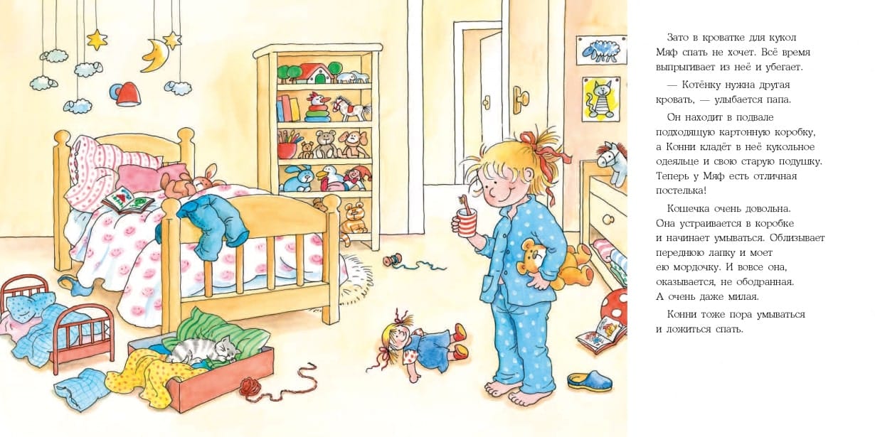 Серия охватывают все жизненные навыки, с которыми ребенок встречается во время взросления от 3 до 14 лет. Ассоциируя себя с главной героиней, малыш проживает ее историю, учится и познает мир. О чем книга В этой истории малыш на примере Конни поймет, что у всех поступков есть последствия. Однажды в дом маленькой героини попадает маленький котенок, и Конни просит его оставить. Кроме радостных игр в ее жизни появились еще и заботы. Ведь за питомцем нужно ухаживать, водить к ветеринару, убирать разбросанные вещи, приучать к туалету и когтеточке. Гид для родителей, или Что вы можете сделать с этой книгой Развивайте жизненные навыки Книга учит брать на себя ответственность и договариваться со взрослыми. Малыш точно запомнит, что: домашнее животное — это не только игра и развлечение, но еще и большая ответственность; ваши питомцы требуют ежедневного ухода и заботы; у каждого поступка есть последствия; важно всегда сдерживать обещание, которое дал.
