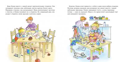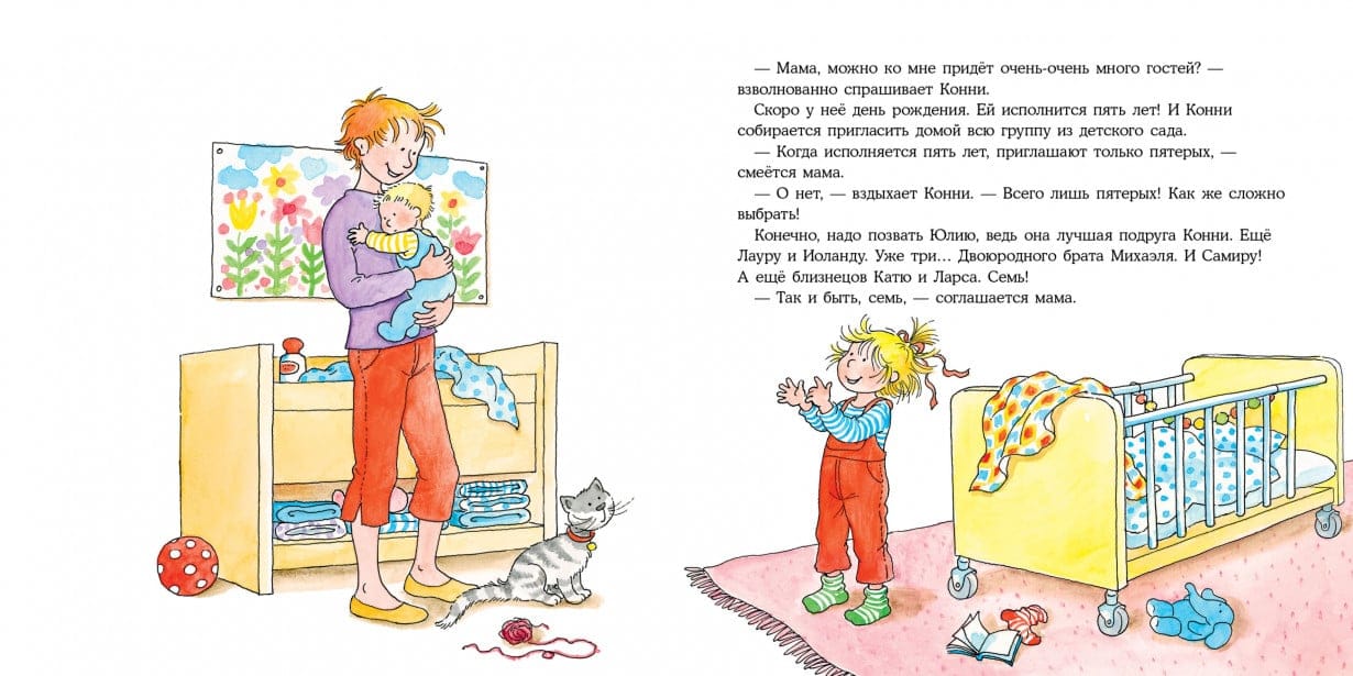 День рождения — самый важный праздник в году. Даже важнее Нового года! Вот и Конни исполняется целых пять лет! Весь день проходит в хлопотах: сначала нужно угостить пирожными ребят в детском саду, потом помочь маме украсить квартиру и, конечно, встретить гостей. Веселитесь вместе с любимой героиней и подготовьтесь ко дню рождения вашего малыша. Вместе с Конни ваш малыш: узнает, какое угощение можно приготовить на день рождения; выучит много интересных детских игр; придумает свою идею для праздника.