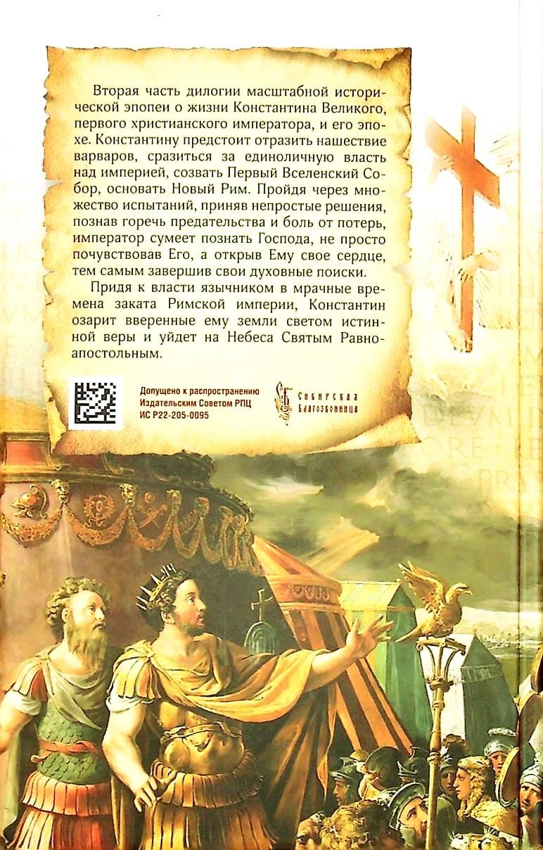 Вторая часть дилогии масштабной исторической эпопеи о жизни Константина Великого, первого христианского императора, и его эпохе. Константину предстоит отразить нашествие варваров, сразиться за единоличную власть над империей, созвать Первый Вселенский Собор, основать Новый Рим. Пройдя через множество испытаний, приняв непростые решения, познав горечь предательства и боль от потерь, император сумеет познать Господа, не просто почувствовав Его, а открыв Ему свое сердце, тем самым завершив свои духовные поиски.