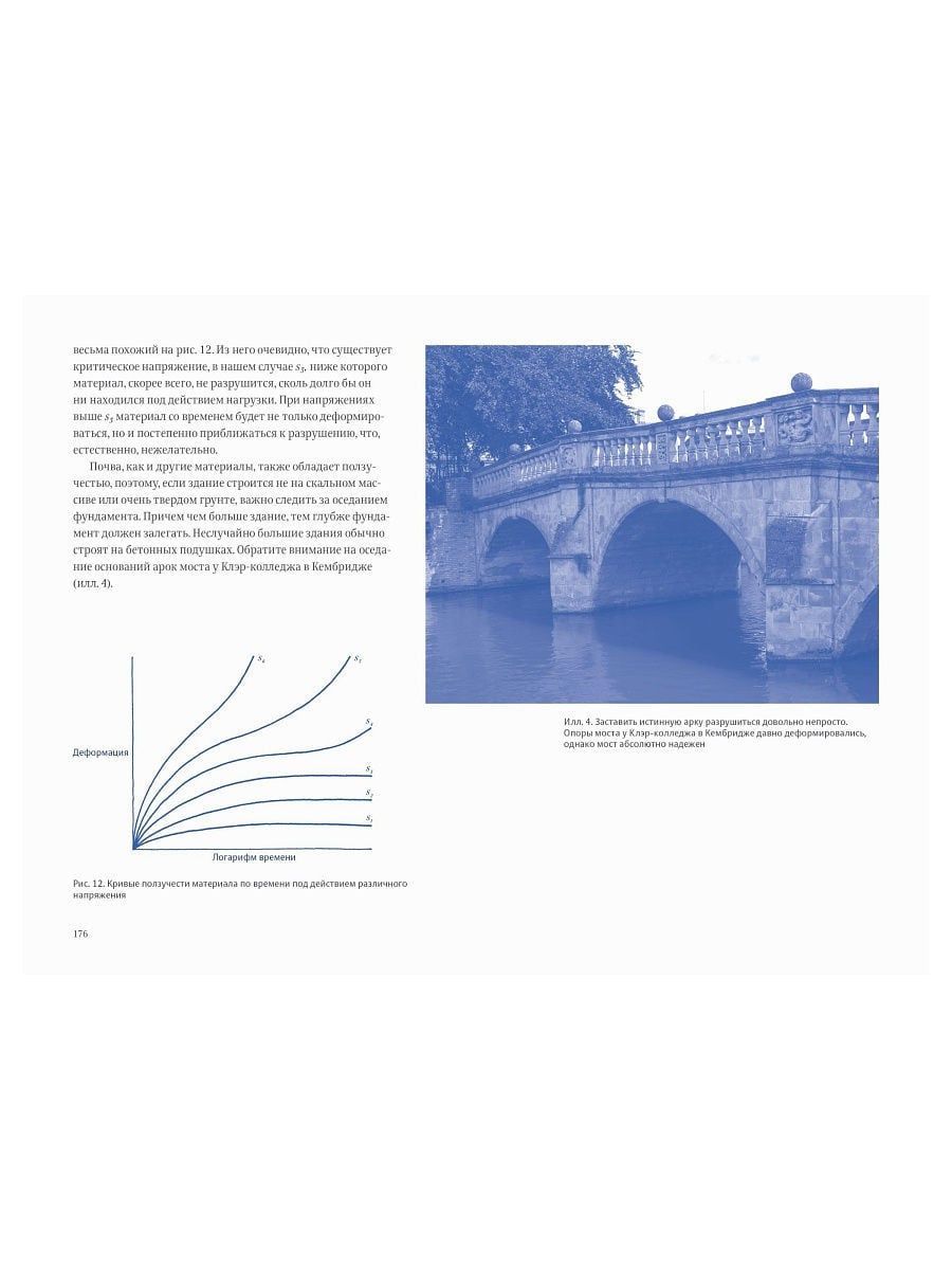 Неформально и остроумно, но без чрезмерного упрощения автор объясняет, как действуют могущественные силы, которые помогают зданиям не разваливаться, вантовым мостам не падать под тяжестью восьми­полосного автомобильного трафика, а плотинам сдерживать тысячи тонн воды. И наоборот: почему из-за таких явлений, как натяжение, скру­чивание, сдвиг и сжатие, ­все-таки случаются катастрофы, отваливаются крылья у самолетов и ломаются ноги у людей.
