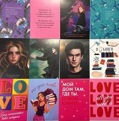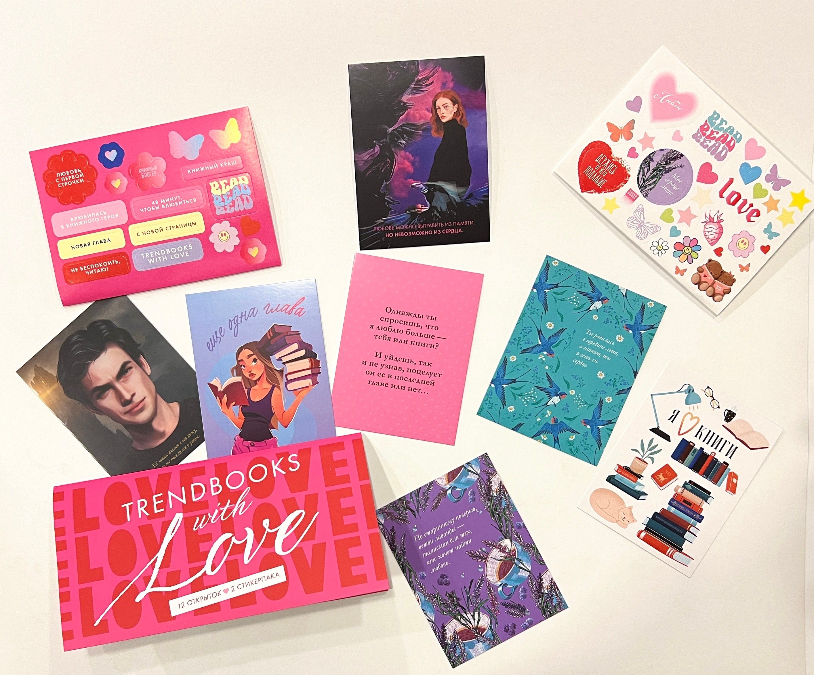 В этом розовом конверте собраны красочные стикерпаки и открытки, которые порадуют каждого читателя.