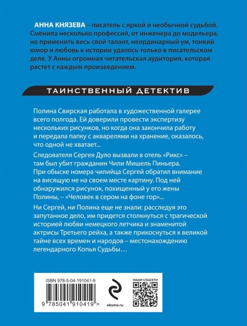 Ни Сергей, ни Полина еще не знали: расследуя это запутанное дело, им придется столкнуться с трагической историей любви немецкого летчика и знаменитой актрисы Третьего рейха, а также прикоснуться к великой тайне всех времен и народов — местонахождению легендарного Копья Судьбы…