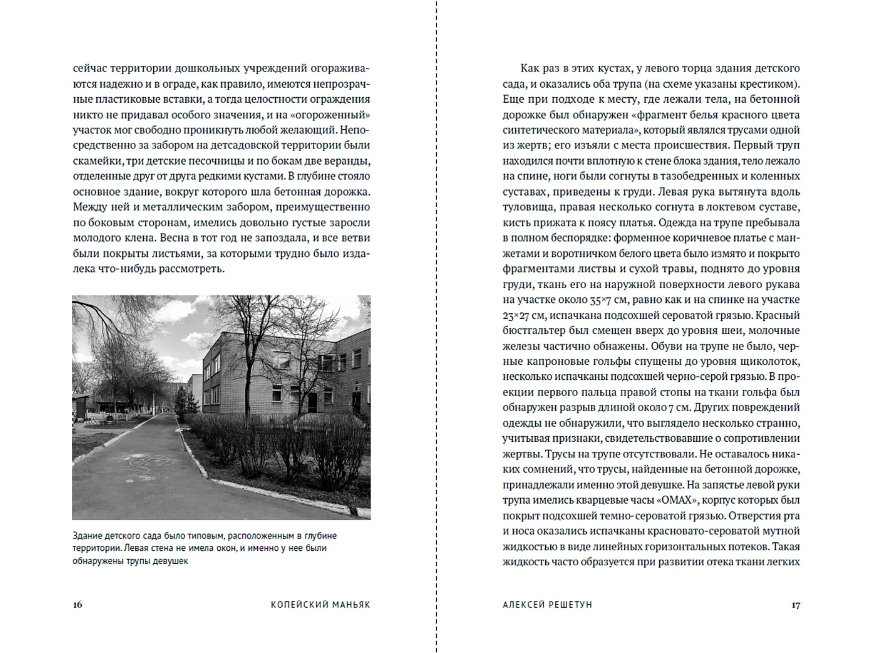 Судебно-медицинский эксперт и автор бестселлера «Вскрытие покажет» Алексей Решетун приглашает вас погрузиться в леденящую душу хронику одного из самых сложных расследований начала 2000‑х. 23 мая 2003 года в Копейске были обнаружены тела двух задушенных выпускниц в школьной форме — жестокое преступление, ставшее частью серии из шести убийств. Жертвами маньяка всегда оказывались женщины. Книга подробно описывает ход расследования и особенности работы следователей, медицинских экспертов и психиатров.