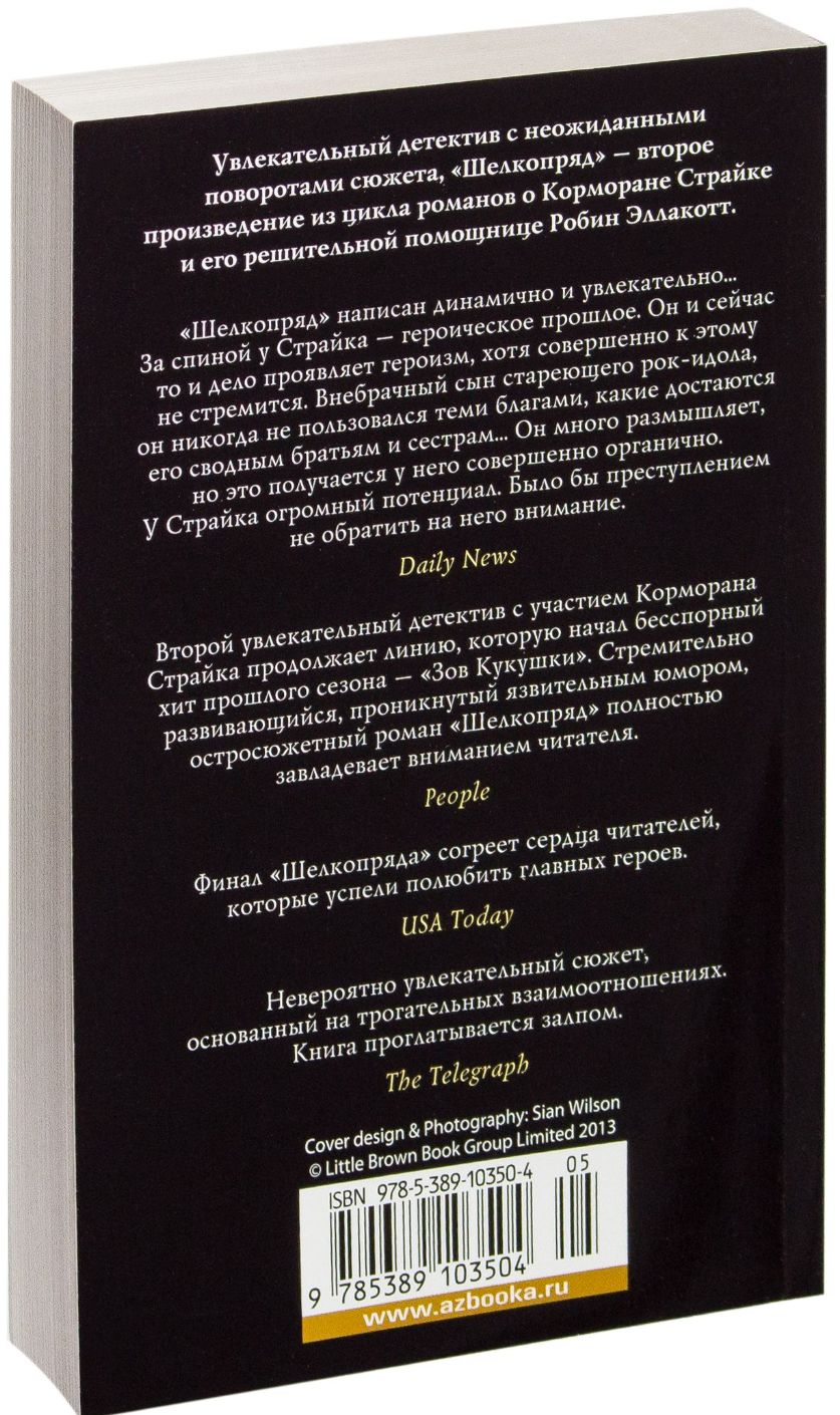 После исчезновения писателя Оуэна Куайна его жена обращается к частному сыщику Корморану Страйку. Полагая, что муж просто скрывается от родных, как случалось уже не раз, Леонора Куайн поручает Страйку найти беглеца и вернуть в лоно семьи. Но в ходе расследования Страйк понимает, что дело обстоит куда серьезнее, чем кажется Леоноре. Оуэн Куайн забрал с собой рукопись нового романа, где выставил в неприглядном свете едва ли не всех своих знакомых, включая весьма известных и влиятельных лиц. Писатель сломает их судьбы, если не откажется от публикации. Неудивительно, что многие хотели бы заставить его умолкнуть. Вскоре Страйк выясняет, что Куайн стал жертвой чудовищного убийства. Теперь необходимо просчитать мотивы неслыханно жестокого, изощренного преступника. Увлекательный детектив с неожиданными поворотами сюжета, «Шелкопряд» — второе произведение из цикла романов о Корморане Страйке и его решительной помощнице Робин Эллакотт.