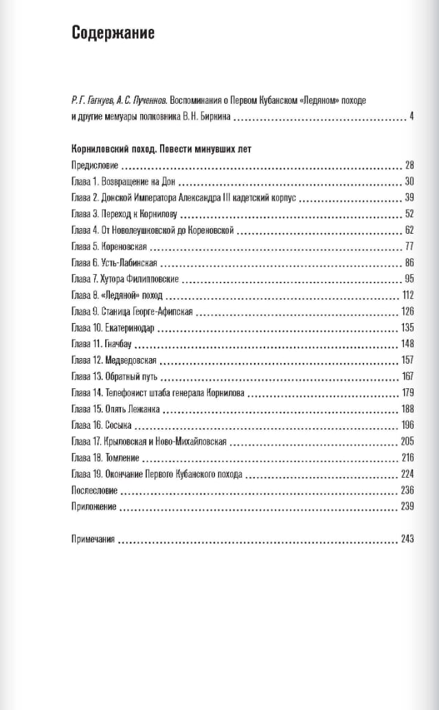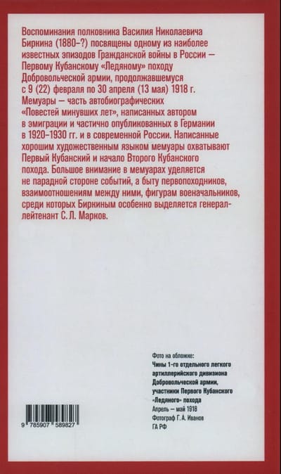 Воспоминания полковника Василия Николаевича Биркина (1880–?) посвящены одному из наиболее известных эпизодов Гражданской войны в России — Первому Кубанскому «Ледяному» походу Добровольческой армии, продолжавшемуся с 9 (22) февраля по 30 апреля (13 мая) 1918 г. Мемуары — часть автобиографических «Повестей минувших лет», написанных автором в эмиграции и частично опубликованных в Германии в 1920–1930 гг. и в современной России. Написанные хорошим художественным языком мемуары охватывают Первый Кубанский и начало Второго Кубанского похода. Большое внимание в мемуарах уделяется не парадной стороне событий, а быту первопоходников, взаимоотношениям между ними, фигурам военачальников, среди которых Биркиным особенно выделяется генерал-лейтенант С.Л.Марков.