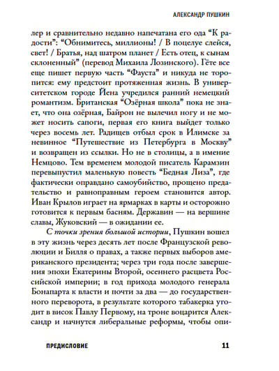 Эта книга — не классическая биография. Она рассказывает кратко обо всем: о лицее, ссылке, диалоге с царем и провале надежды. Счастье, вера, любовь и семья, политика, деньги, дуэль… Многоточие.