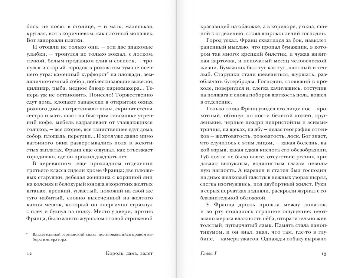 В своем втором, написанном в Берлине романе «Король, дама, валет» (1928) Владимир Набоков обращается к материалу из немецкой жизни и впервые принимается за глубокое исследование обывательской психологии, продолженное затем в «Камере обскура» и «Отчаянии». За криминальным сюжетом с любовным треугольником кроется мастерски раскрытое противостояние двух полярных образов жизни: трафаретного, бездушного, доведенного до автоматизма, и естественного, полнокровного, творческого. В условном мире реклам и модных журналов овеществляется как будто само сознание и естество молодой «дамы», главной героини книги, и наоборот, неожиданной поэзией наполняются быт и проекты ее мужа, богатого коммерсанта Драйера, — «короля» в той сложной игре, ко-