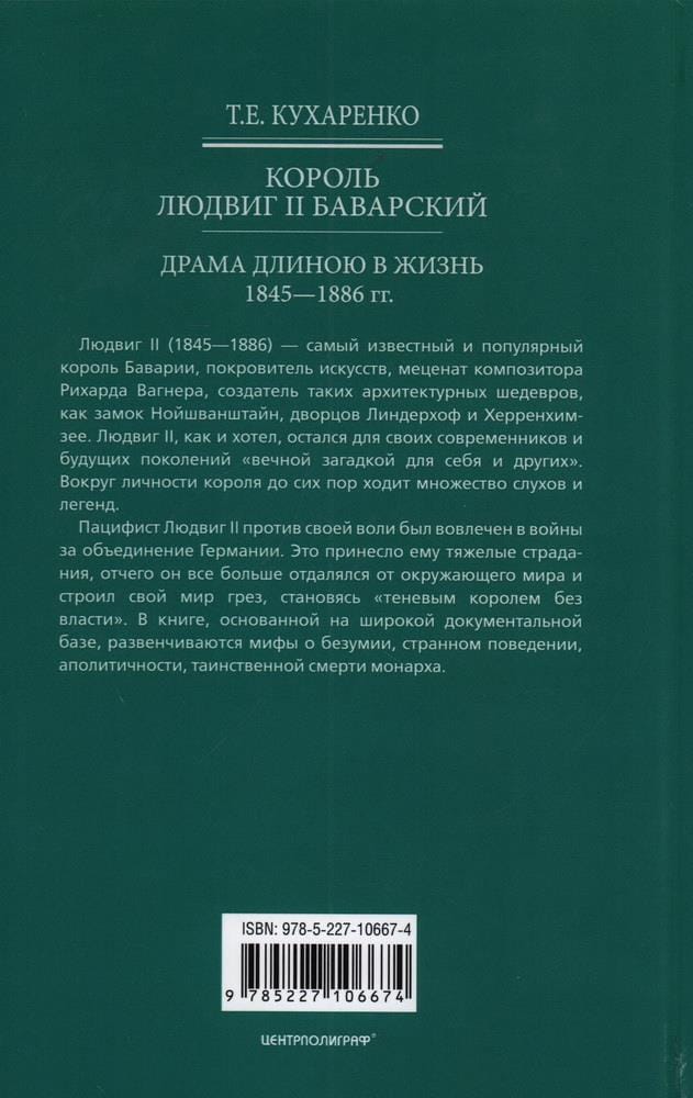 Людвиг II (1845–1886) — самый известный и популярный король Баварии, покровитель искусств, меценат композитора Рихарда Вагнера, создатель таких архитектурных шедевров, как замок Нойшванштайн, дворцов Линдерхоф и Херренхимзее. Людвиг II, как и хотел, остался для своих современников и будущих поколений «вечной загадкой для себя и других». Вокруг личности короля до сих пор ходит множество слухов и легенд. Пацифист Людвиг II против своей воли был вовлечен в войны за объединение Германии, это принесло ему тяжелые страдания, отчего он все больше отдалялся от окружающего мира и строил свой мир грез, становясь «теневым королем без власти».