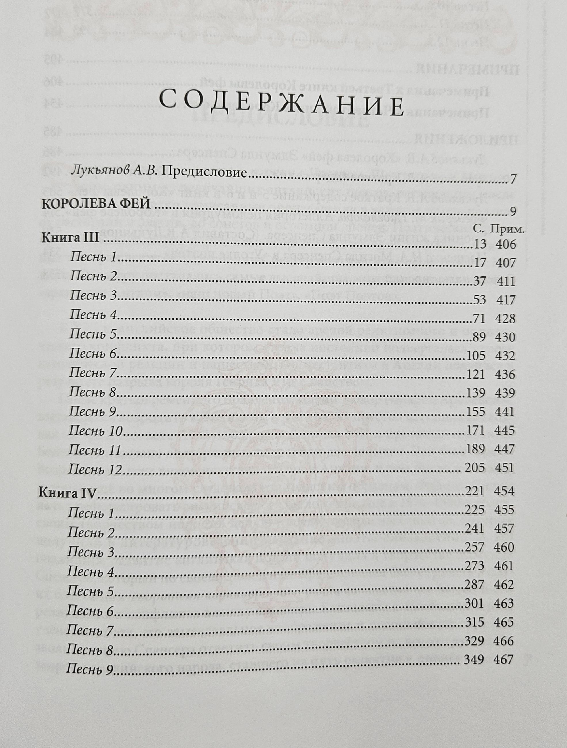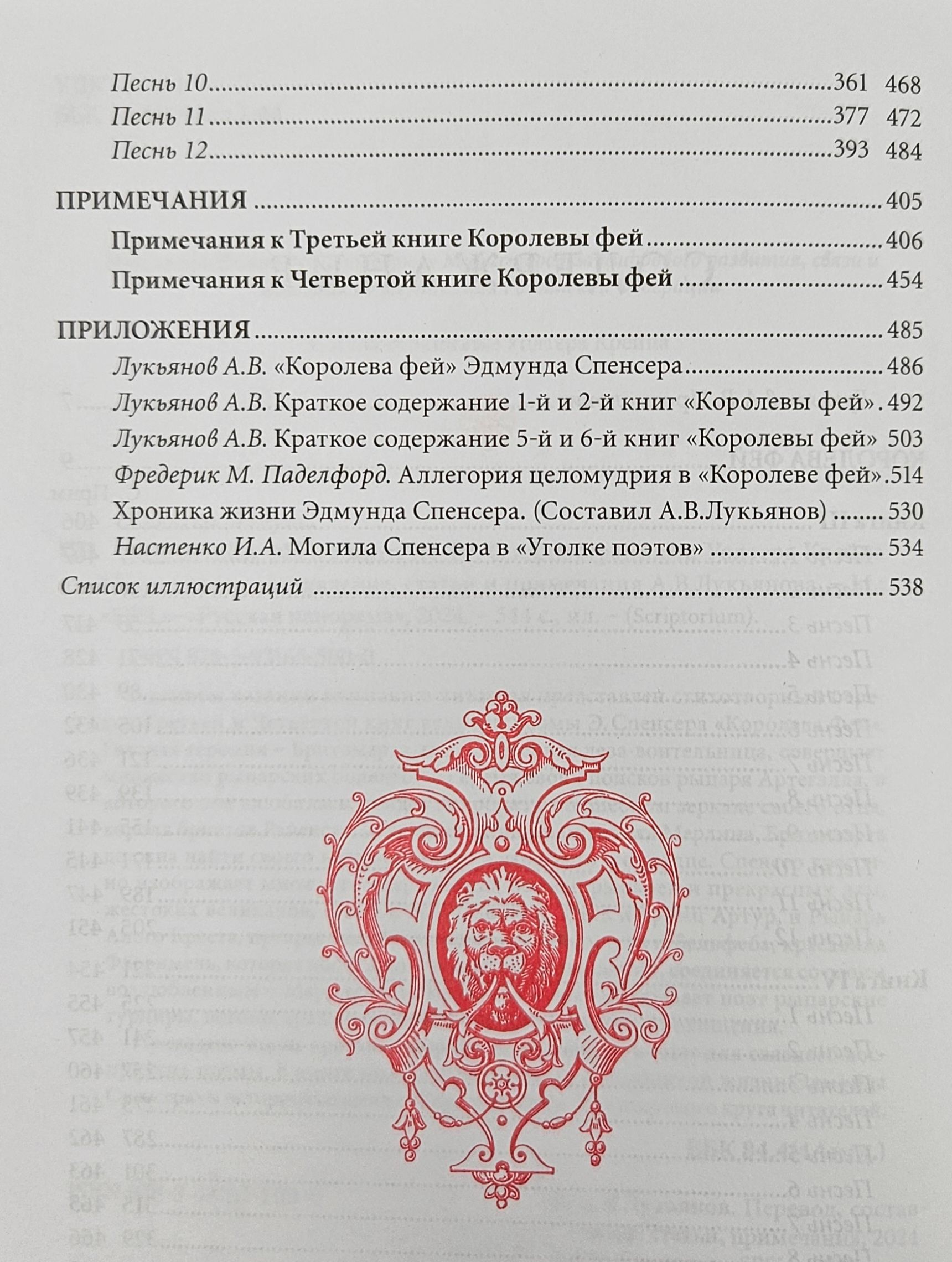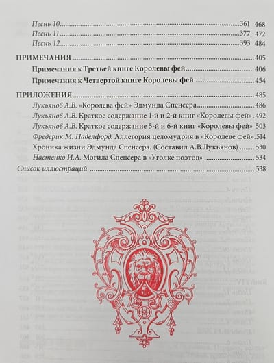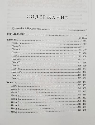 Приведено также краткое содержание первых двух книг для связного восприятия поэмы. В книге можно ознакомиться с «Хроникой жизни Эдмунда Спенсера» и историей создания «Королевы Фей».