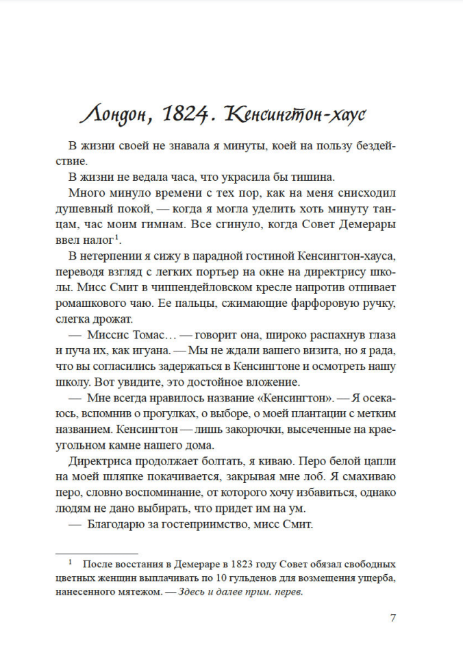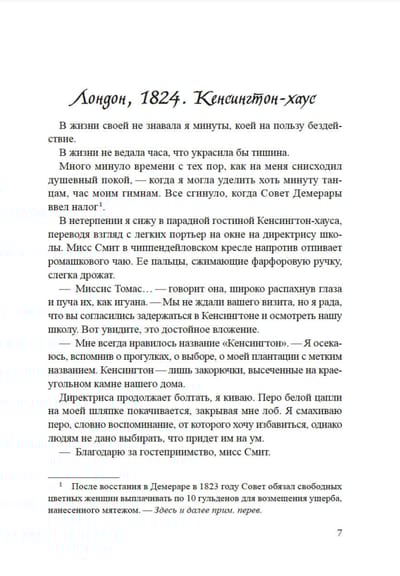 Рожденная в рабстве на крошечном карибском острове Монтсеррат, Дороти Кирван сумела выкупить свободу у своего отца — ирландского плантатора, а потом добилась освобождения сестры и матери. Ценой невероятных усилий ей удалось стать богатой и влиятельной женщиной, владелицей домов и земель, от сахарных плантаций Доминики и Барбадоса до роскошного отеля в Демераре на южноамериканском континенте. Это рассказ о реальной исторической фигуре — женщине, сумевшей пробить себе путь наверх в чудовищных условиях рабства и колониализма, женщине, не боявшейся любить и не останавливавшейся ни перед чем ради любимых.