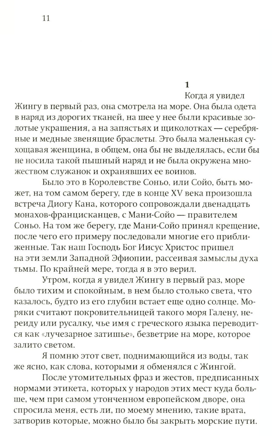Королева, или, как она сама себя называла, король, Жинга Мбанди (ок. 1583-1663) по праву считается одной из наиболее ярких и необычных фигур в истории не только Анголы, но и всей Африки. «Женщина, которая сражалась с оружием в руках, так же отважно, как самый храбрый мужчина. Женщина, которая никому не подчинялась и не верила в Бога. Женщина, которая разбиралась в военном деле, знала все хитрости и опасности войны, а, беседуя с советниками, соображала лучше самых хороших стратегов», - такой королеву представляет современный ангольский писатель Жузе Эдуарду Агуалуза. В его романе история легендарной правительницы рассказывается ее секретарем - бразильским падре Франсишку Жузе да Санта Крушем, чья жизнь кардинально меняется, после того, как он совершает путешествие через Атлантику...