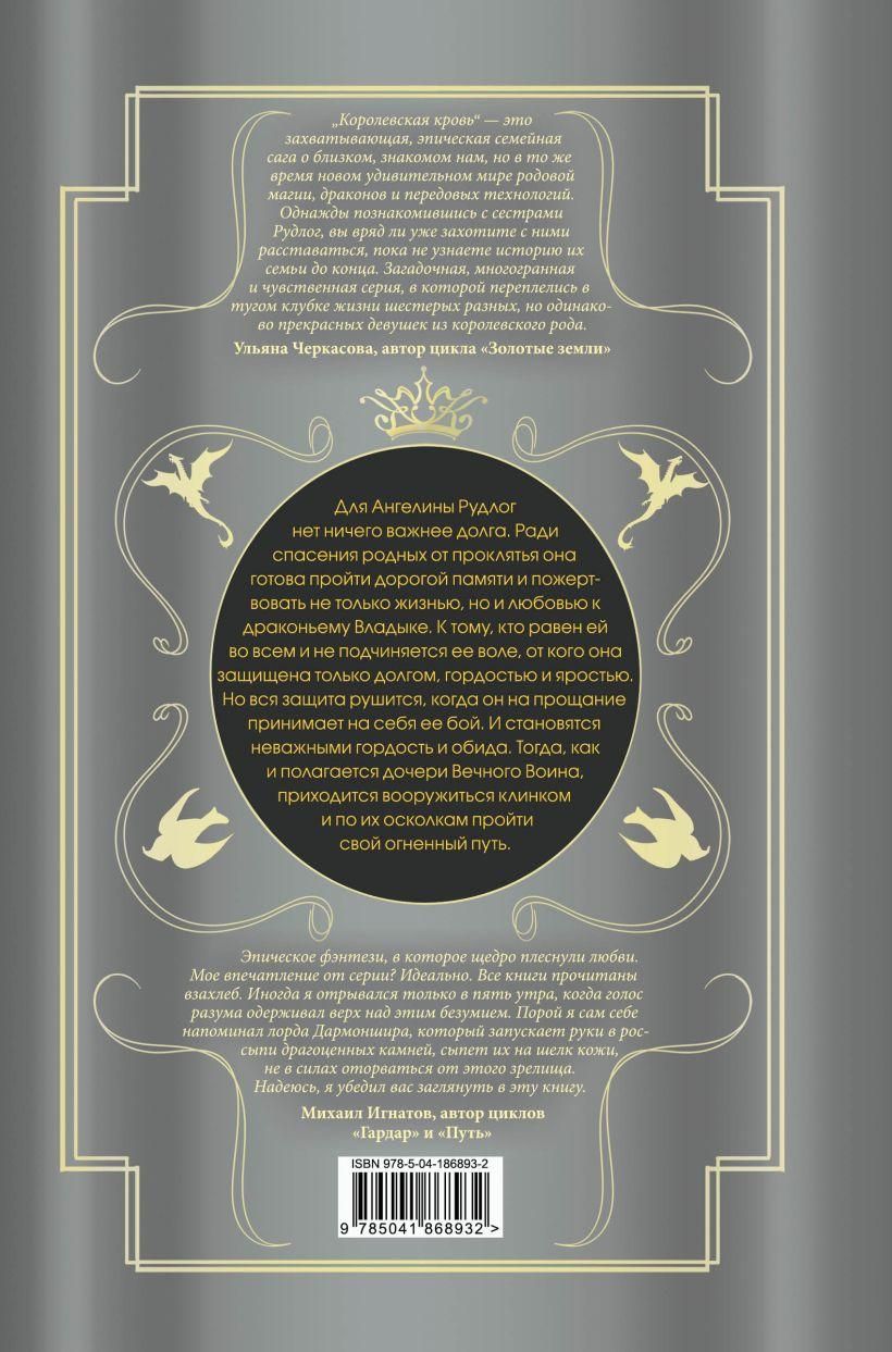Для Ангелины Рудлог нет ничего важнее долга. Ради спасения родных от проклятья она готова пройти дорогой памяти и пожертвовать не только жизнью, но и любовью к драконьему Владыке. К тому, кто равен ей во всем и не подчиняется ее воле, от кого она защищена только долгом, гордостью и яростью. Но вся защита рушится, когда он на прощание принимает на себя ее бой. И становятся неважными гордость и обида. Тогда, как и полагается дочери Вечного Воина, приходится вооружиться клинком и по их осколкам пройти свой огненный путь.