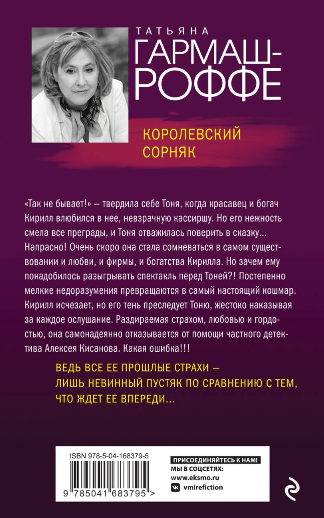 «Так не бывает!» - твердила себе Тоня, когда красавец и богач Кирилл влюбился в нее, невзрачную кассиршу. Но его нежность смела все преграды, и Тоня отважилась поверить в сказку... Напрасно! Очень скоро она стала сомневаться в самом существовании и любви, и фирмы, и богатства Кирилла. Но зачем ему понадобилось разыгрывать спектакль перед Тоней?! Постепенно мелкие недоразумения превращаются в самый настоящий кошмар. Кирилл исчезает, но его тень преследует Тоню, жестоко наказывая за каждое ослушание. Раздираемая страхом, любовью и гордостью, она самонадеянно отказывается от помощи частного детектива Алексея Кисанова. Какая ошибка!!! Ведь все ее прошлые страхи - лишь невинный пустяк по сравнению с тем, что ждет ее впереди...