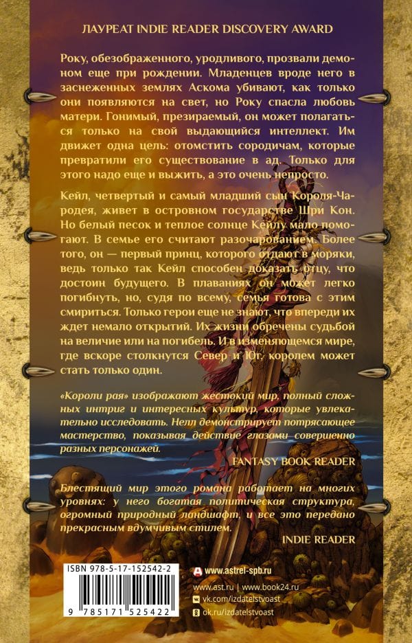 Року, обезображенного, уродливого, прозвали демоном еще при рождении. Младенцев вроде него в заснеженных землях Аскома убивают, как только они появляются на свет, но Року спасла любовь матери. Гонимый, презираемый, он может полагаться только на свой выдающийся интеллект. Им движет одна цель: отомстить сородичам, которые превратили его существование в ад. Только для этого надо еще и выжить, а это очень непросто. Кейл, четвертый и самый младший сын Короля-Чародея, живет в островном государстве Шри Кон. Но белый песок и теплое солнце Кейлу мало помогают. В семье его считают разочарованием. Более того, он — первый принц, которого отдают в моряки, ведь только так Кейл способен доказать отцу, что достоин будущего. В плаваниях он может легко погибнуть, но, судя по всему, семья готова с этим смириться. Только герои еще не знают, что впереди их ждет немало открытий. Их жизни обречены судьбой на величие или на погибель. И в изменяющемся мире, где вскоре столкнутся Север и Юг, королем может стать только один.