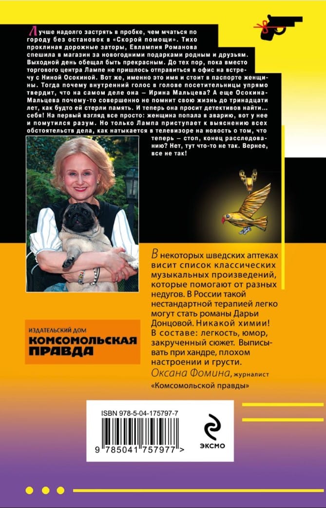 Лучше надолго застрять в пробке, чем мчаться по городу без остановок в «Скорой помощи». Тихо проклиная дорожные заторы, Евлампия Романова спешила в магазин за новогодними подарками родным и друзьям. Выходной день обещал быть прекрасным. До тех пор, пока вместо торгового центра Лампе не пришлось отправиться в офис на встречу с Ниной Осокиной. Вот же, именно это имя и стоит в паспорте женщины. Тогда почему внутренний голос в голове посетительницы упрямо твердит, что на самом деле она — Ирина Мальцева? А еще Осокина-Мальцева почему-то совершенно не помнит свою жизнь до тринадцати лет, как будто ей стерли память. И теперь она просит детективов найти… себя! На первый взгляд, все просто: женщина попала в аварию, вот у нее и помутился разум. Но только Лампа приступает к выяснению всех обстоятельств дела, как натыкается в телевизоре на новость о том, что Нина найдена мертвой. Так что же теперь — стоп, конец расследованию? Нет, тут что-то не так. Вернее, все не так!