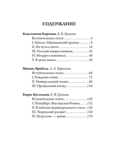 Книга посвящена жизни и творчеству трех выдающихся мастеров русской живописи рубежа XIX–XX веков — первого «русского импрессиониста», блистательного колориста и театрального декоратора Константина Коровина, «творца русского модерна», мечтателя и чудесного провидца «нездешних стран» Михаила Врубеля и «ироничного романтика ностальгических воспоминаний», создателя яркого, жизнерадостного, поэтичного образа России Бориса Кустодиева.