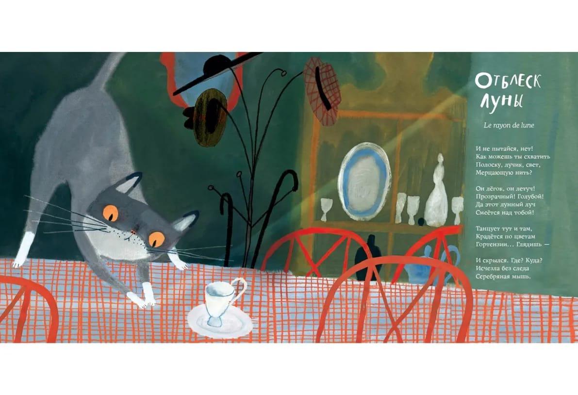 Морис Карем — классик европейской поэзии и любитель кошек. Его пушистые герои познают окружающий мир: наблюдают за солнцем и пытаются поймать ускользающий отблеск луны, гуляют по крышам, знакомятся с ловкими и проворными мышками и удивляются первому снегу.