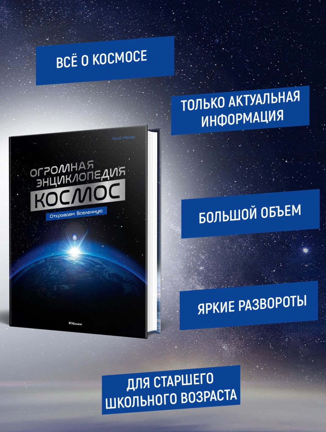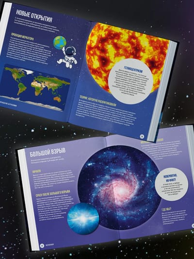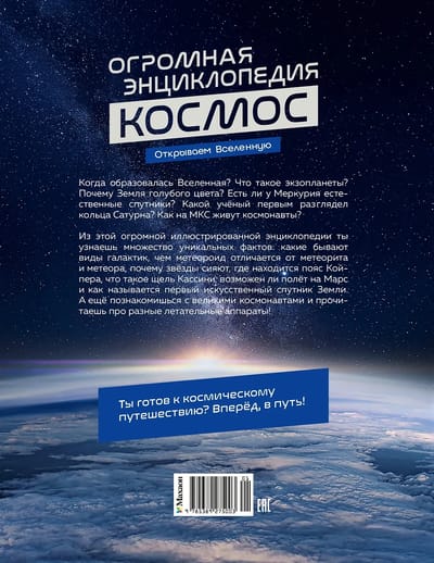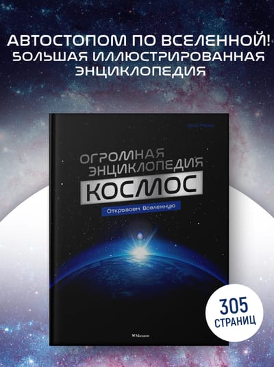 Из этой огромной иллюстрированной энциклопедии вы узнаете множество уникальных фактов: какие бывают виды галактик, чем метеороид отличается от метеорита и метеора, почему звёзды сияют, где находится пояс Койпера, что такое щель Кассини, возможен ли полёт на Марс и как называется первый искусственный спутник Земли. А ещё познакомитесь с великими космонавтами и прочитаете про разные летательные аппараты!