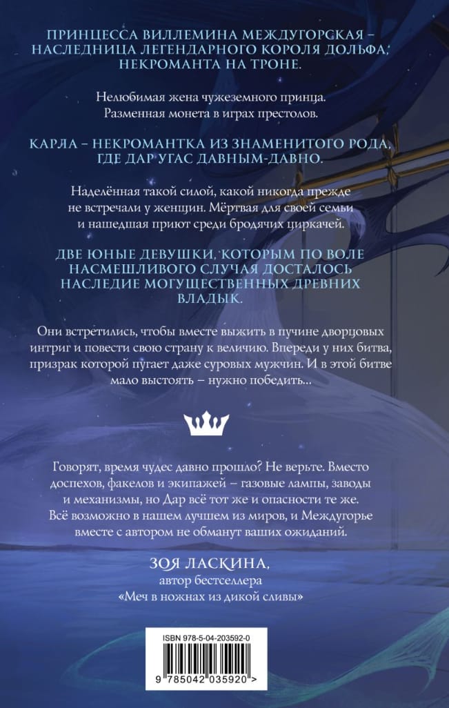 Принцесса Виллемина Междугорская – наследница легендарного короля Дольфа, некроманта на троне. Нелюбимая жена чужеземного принца. Разменная монета в играх престолов.