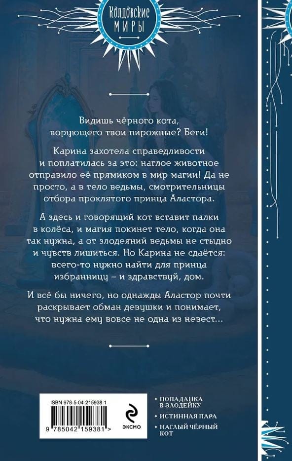 А здесь и говорящий кот вставит палки в колёса, и магия покинет тело, когда она так нужна, а от злодеяний ведьмы не стыдно и чувств лишиться. Но Карина не сдаётся: всего-то нужно найти для принца избранницу — и здравствуй, дом.