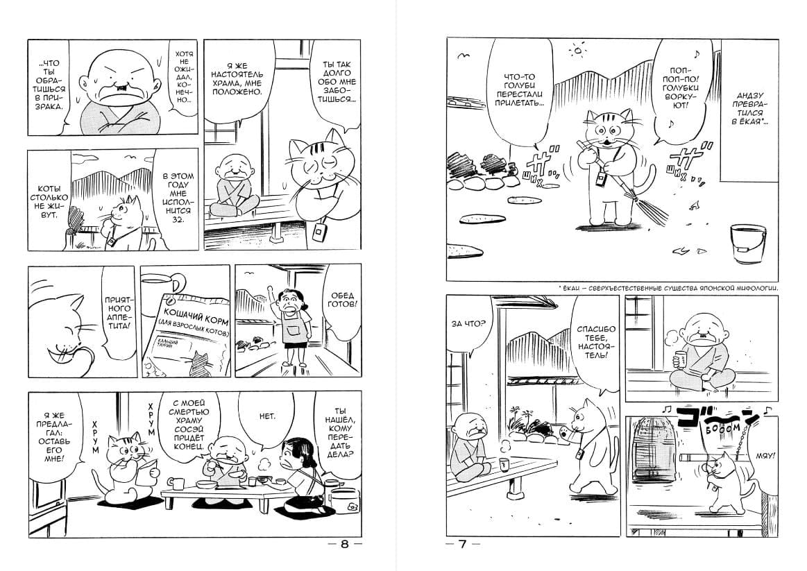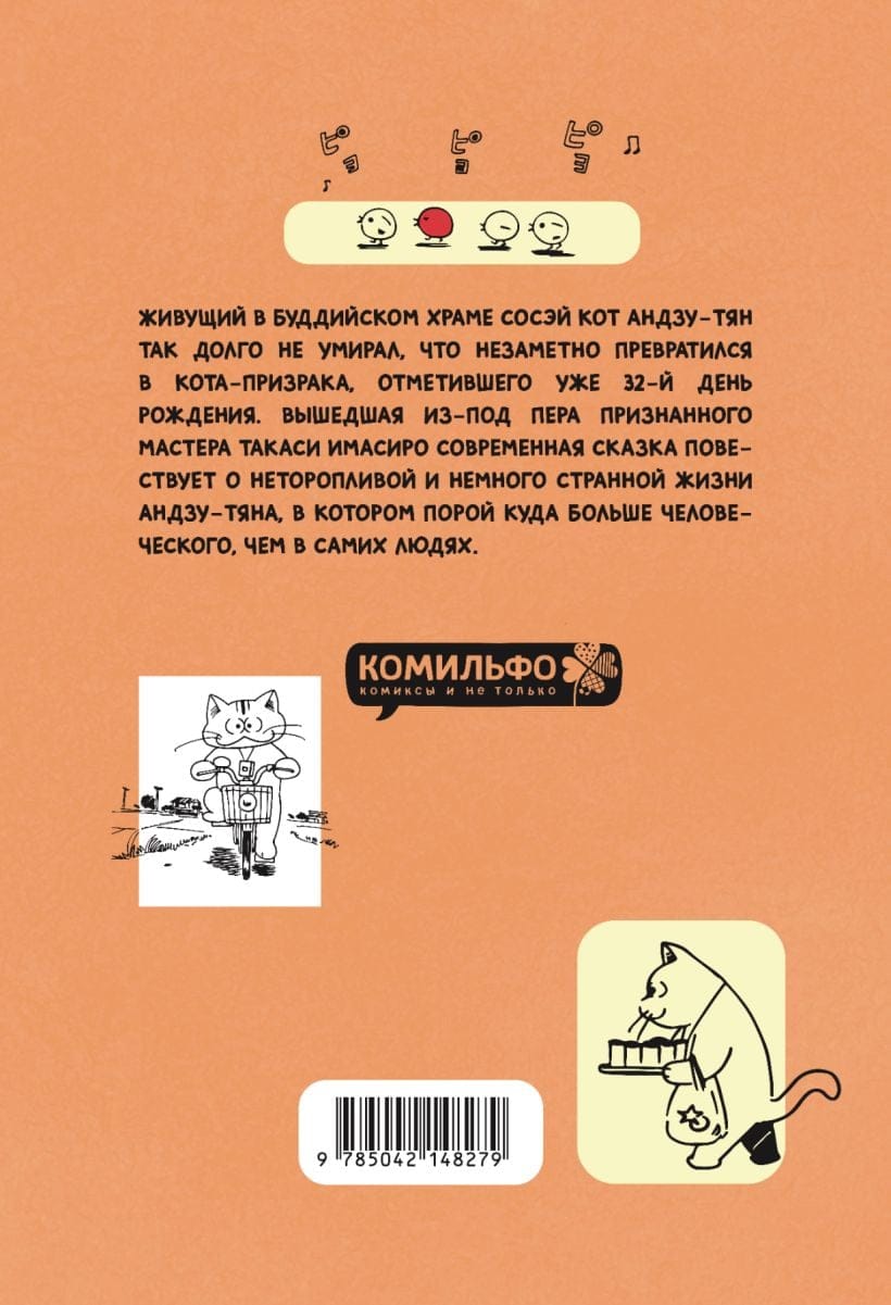 Живущий в буддийском храме Сосэй кот Андзу-тян так долго не умирал, что незаметно превратился в кота-призрака, отметившего уже 32-й день рождения. Вышедшая из-под пера признанного мастера Такаси Имасиро современная сказка повествует о неторопливой и немного странной жизни Андзу-тяна, в котором порой куда больше человеческого, чем в самих людях. В 2024-м году манга получила одноимённую экранизацию.