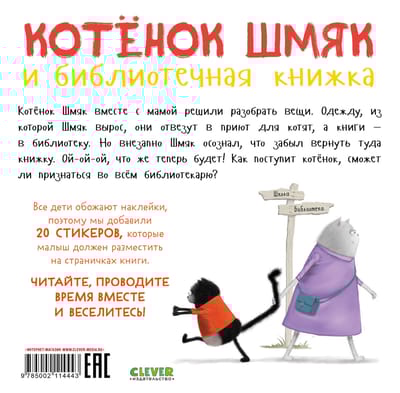 Книжка с наклейками. Котенок Шмяк и библиотечная книжка