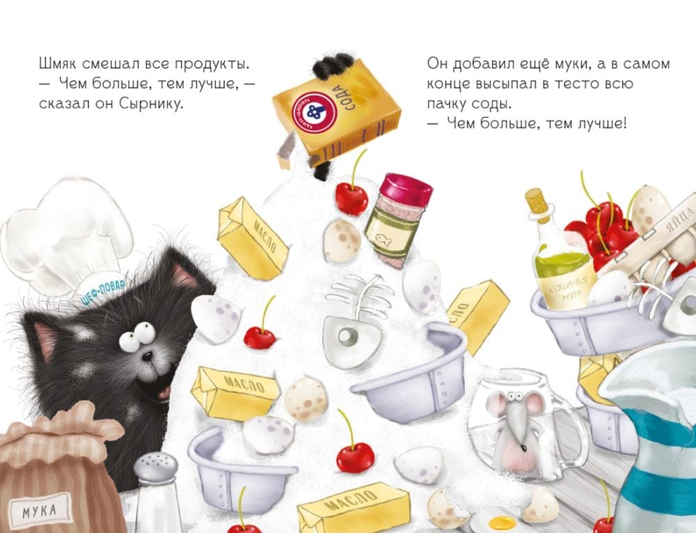 В книгу «Котенок Шмяк и Сырник. Большая книга веселых историй» вошли избранные приключения любимого героя и его лучшего друга: «Падай, снежок!», «Котенок Шмяк — рок-звезда», «Котенок Шмяк печет торт», «Давай играть» и «Спокойной ночи, Шмяк!». Идеально для начинающих читателей! Эти истории уже полюбили миллионы маленьких читателей по всему миру. Только в России совокупный тираж перевалил за 1,5 миллиона экземпляров, а тысячи малышей нашли в неунывающем котенке лучшего друга. Вы узнаете, получится ли у Шмяка слепить снежного кота, стать рок-звездой и победить в конкурсе юных кондитеров, сможет ли наш герой стать чемпионом по пряткам и подружиться со злейшим врагом. Книга «Котенок Шмяк и Сырник. Большая книга веселых историй» идеально подходит для первого чтения: крупный шрифт, простые короткие предложения не испугают малыша, а веселые сюжеты удержат внимание и интерес. Разделите пять приключений с любимым героем!