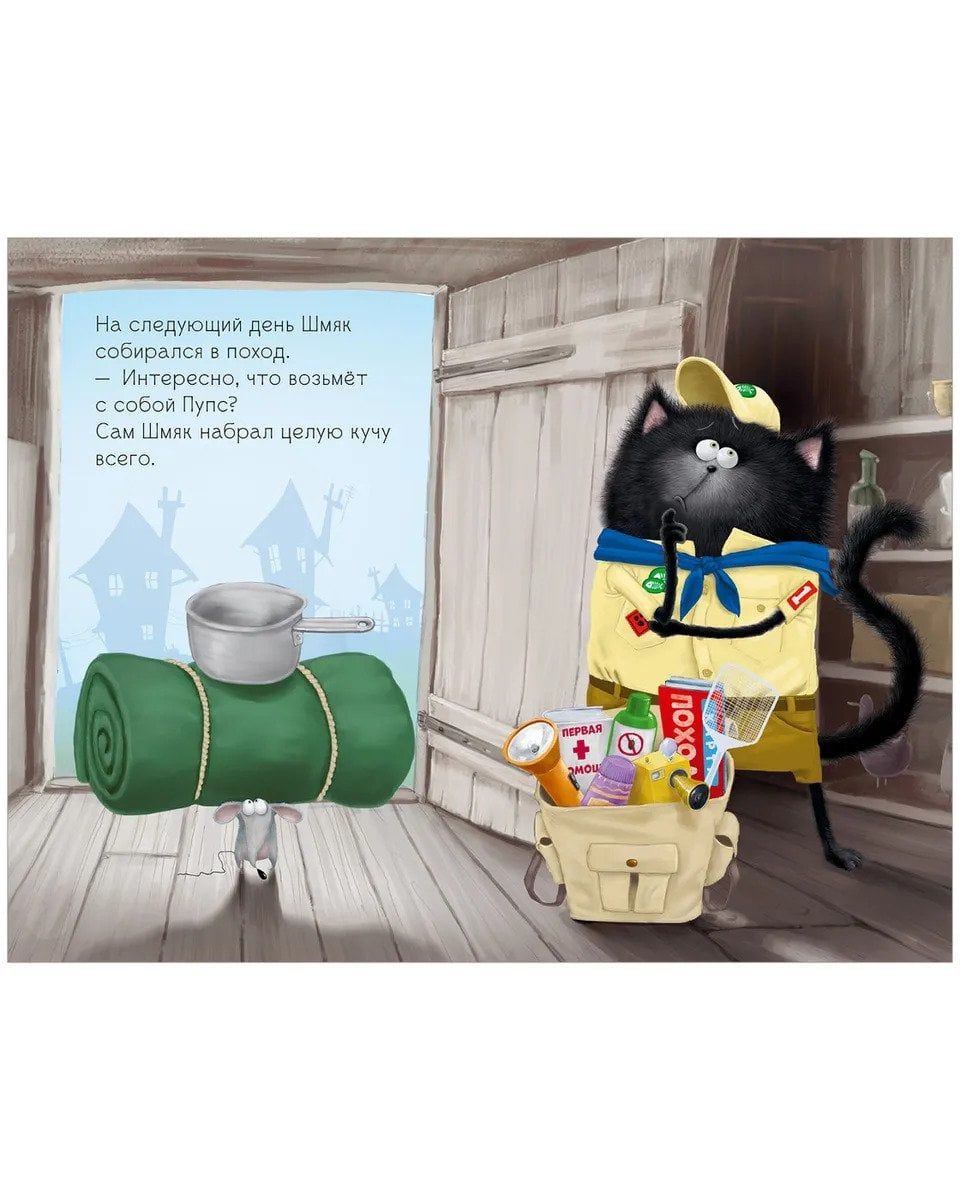 Котенок Шмяк стал скаутом. Он готовился пойти в поход и собрал огромный рюкзак. В отряде у Шмяка появился новый скаут - котенок Пупс, он умел все на свете - разжигать костер, завязывать крепкие узлы. Шмяку очень хотелось быть таким же умелым, как Пупс. И вот ребята отправились в поход. Шмяк собрал огромный рюкзак, а Пупс - совсем не много. Только в походе оказалось, что Шмяк не зря взял все-все-все! Благодаря Шмяку ребята смогли поесть и безопасно пройти через мост. Как хорошо быть скаутом!