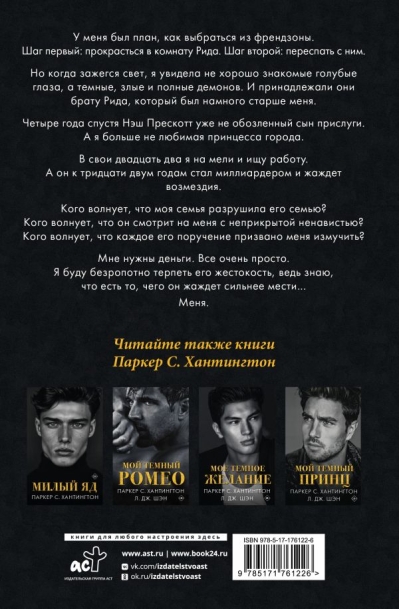 Четыре года спустя Нэш Прескотт уже не обозленный сын прислуги. А я больше не любимая принцесса города. В свои двадцать два я на мели и ищу работу. А он к тридцати двум годам стал миллиардером и жаждет возмездия.
