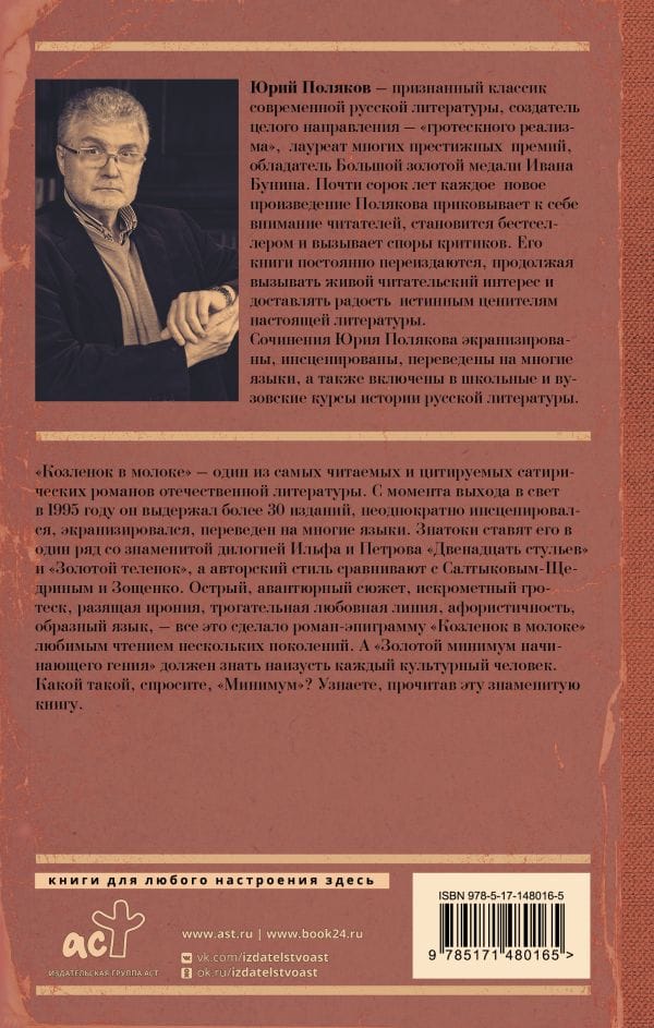Герой романа «Козленок в молоке» молод, легкомыслен и немного заносчив. Он влюблен, а потому чувствует себя всемогущим и берется на пари сделать из первого встречного гения, который, не написав ни единой строчки, станет знаменитым писателем... Главное, чтобы об этом, кроме спорящих, не знала ни одна живая душа. Но никто не знает, какую цену придется заплатить за невинный розыгрыш.