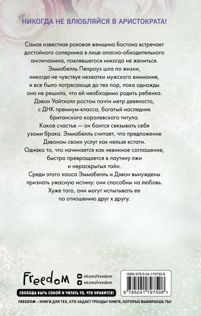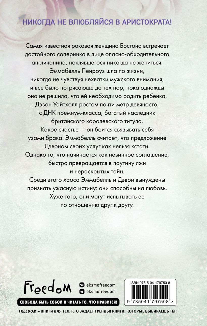 Эммабелль Пенроуз шла по жизни, никогда не чувствуя нехватки мужского внимания, и все было потрясающе хорошо до тех пор, пока однажды она не решила, что ей необходимо родить ребенка. Дэвон Уайтхолл, богатый наследник британского королевского титула, боящийся связывать себя узами брака, — идеальный кандидат.