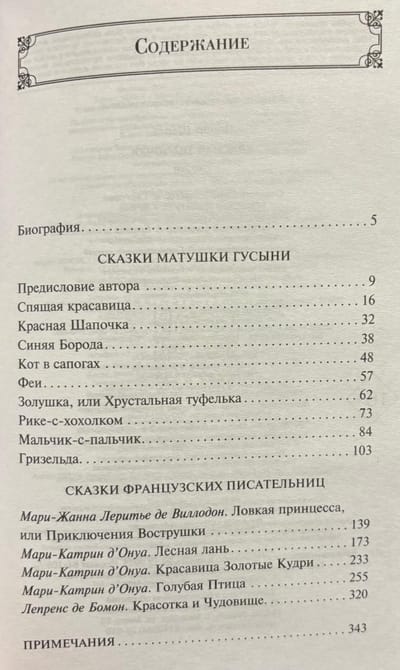 В сборник вошли прозаические сказки Перро — в неадаптированных переводах, изданных под редакцией Михаила Александровича Петровского. А также наиболее известные сказки его продолжателей и последователей — как образцы французской сказочной литературы XVII-XVIII веков.