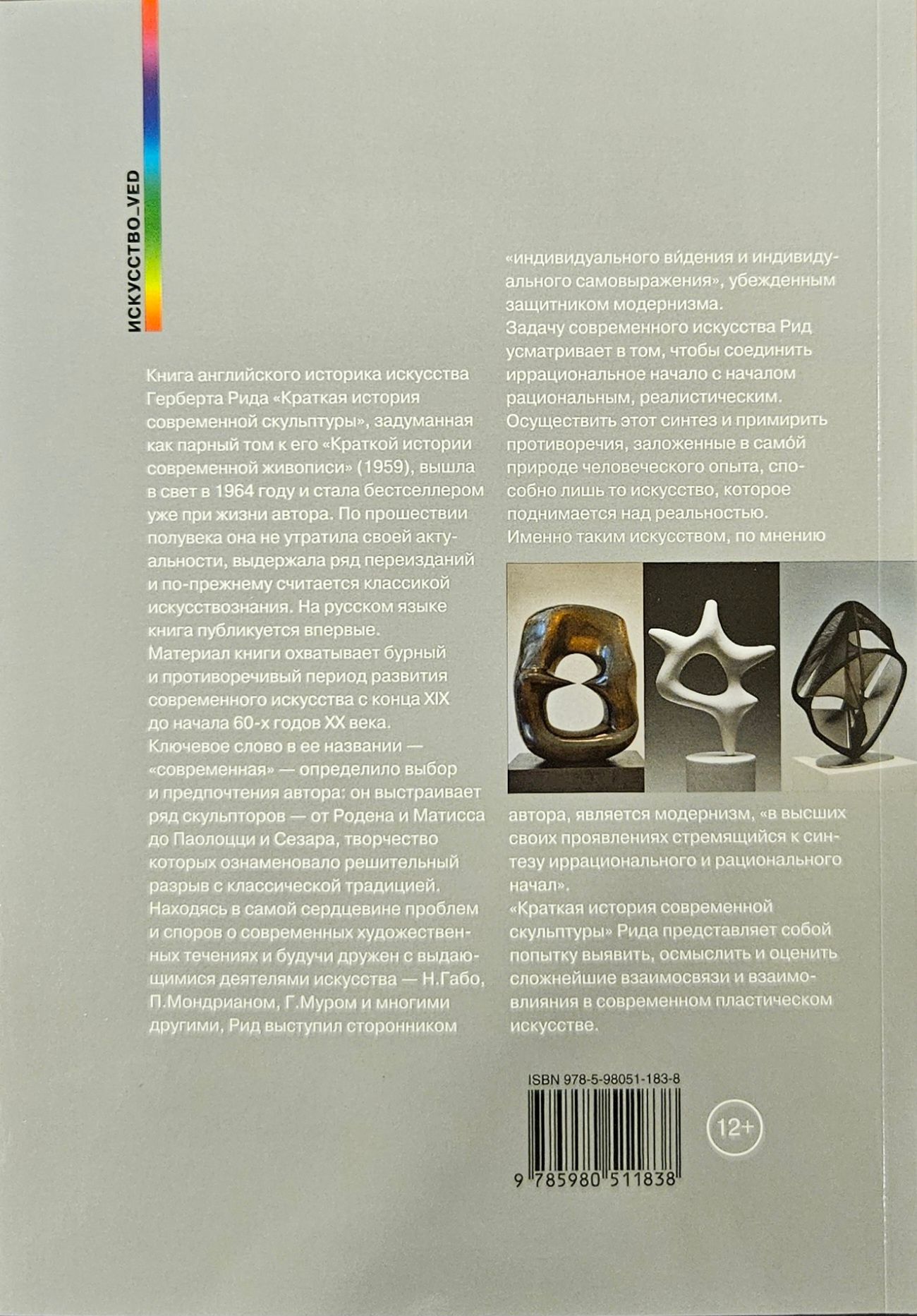 Книга английского историка искусства Герберта Рида «Краткая история современной скульптуры» (1964), задуманная как парный том к его «Краткой истории современной живописи» (1959), впервые публикуется на русском языке. По прошествии полувека она не утратила своей актуальности и по-прежнему считается классикой искусствознания. Материал книги охватывает бурный и противоречивый период развития современного искусства с конца XIX до начала 60-х годов ХХ века. Ключевое слово в ее названии — «современная» — определило выбор автора: он выстраивает ряд скульпторов — от Родена до Сезара, в творчестве которых произошел решительный разрыв с классической традицией, и анализирует их работы, отвечающие духу нового времени.