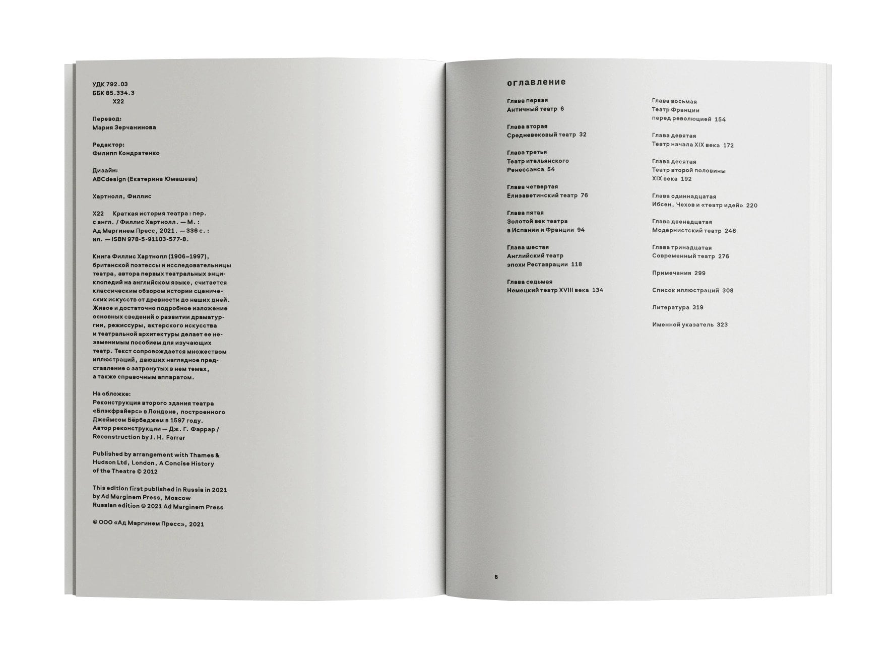 Книга Филлис Хартнолл, британской поэтессы и исследовательницы театра, автора первых театральных энциклопедий на английском языке, считается классическим обзором истории сценических искусств от древности до наших дней. Живое и достаточно подробное изложение основных сведений о развитии драматургии, режиссуры, актерского искусства и театральной архитектуры делает ее незаменимым пособием для изучающих театр. Текст сопровождается множеством иллюстраций, дающих наглядное представление о затронутых в нем темах, а также справочным аппаратом.